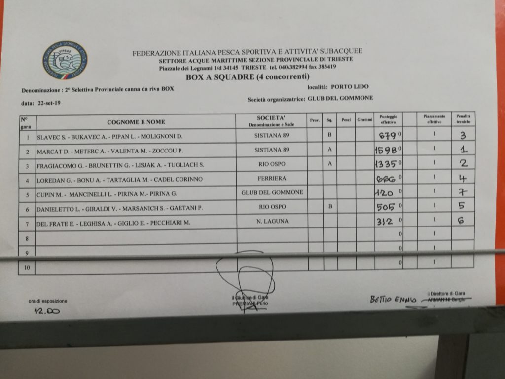 Domenica 22 Settembre si è svolta la seconda gara di pesca di superficie organizzata dal nostro sodalizio in collaborazione con la FIPSAS Provinciale di Trieste. Sette le squadre partecipanti per un totale di 28 concorrenti. La gara inizia alle ore otto nel sito di Porto Lido a Trieste. La mattinata volge al bel tempo e trova il suo momento più alto con la cattura di una Orata da ben kg. 1,530. Con il fischio finale alle ore 11.00 si conclude la gara. Immediata la pesatura in vivo del pesce catturato con la relativa remissione in mare dello stesso. Alle 12.00 presso la sede FIPSAS le premiazioni ed il famoso “rebechin” finale in una atmosfera di allegria e amicizia.